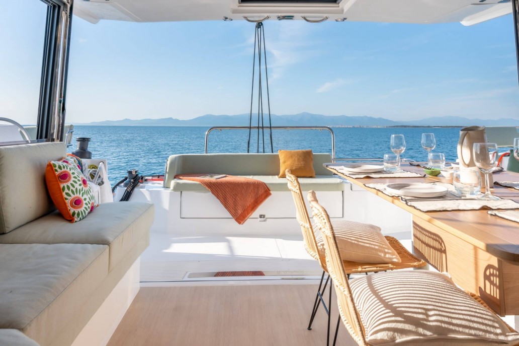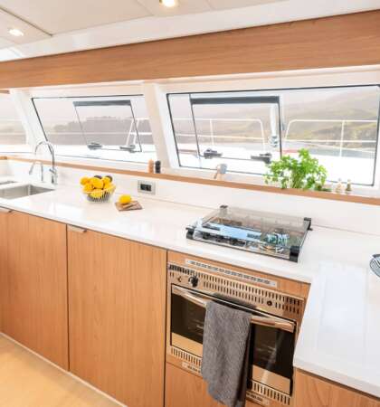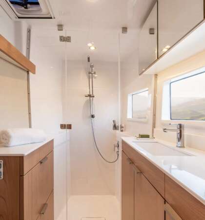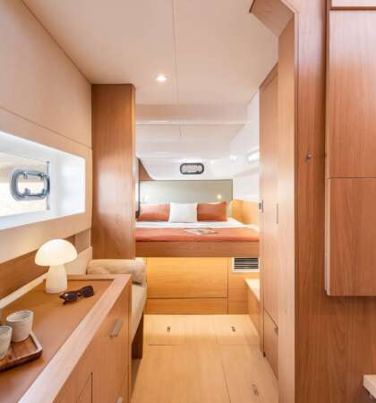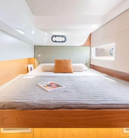 - Espacios amplios y cómodos: Este catamarán ofrece una superficie utilizable de 66 m² (710 pies cuadrados), con opciones de configuración en su interior, desde un modelo de 2 cabinas hasta una opción de 4 cabinas, adaptándose a las necesidades de cada tripulación o familia.