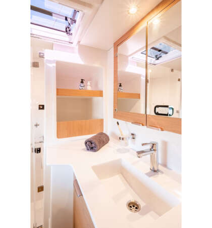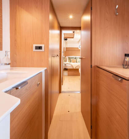 - Espacios amplios y cómodos: Con 56 m² de superficie utilizable y opciones de configuración de 2 a 4 cabinas, se adapta a las necesidades de cualquier tripulación.