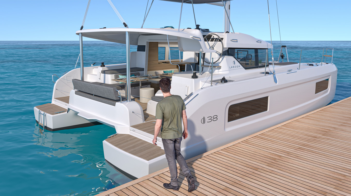 Con una maniobrabilidad mejorada y faldones prolongados para embarque seguro, el Lagoon 38 permite libertad de movimientos y navegación sencilla. - Diseño integrado