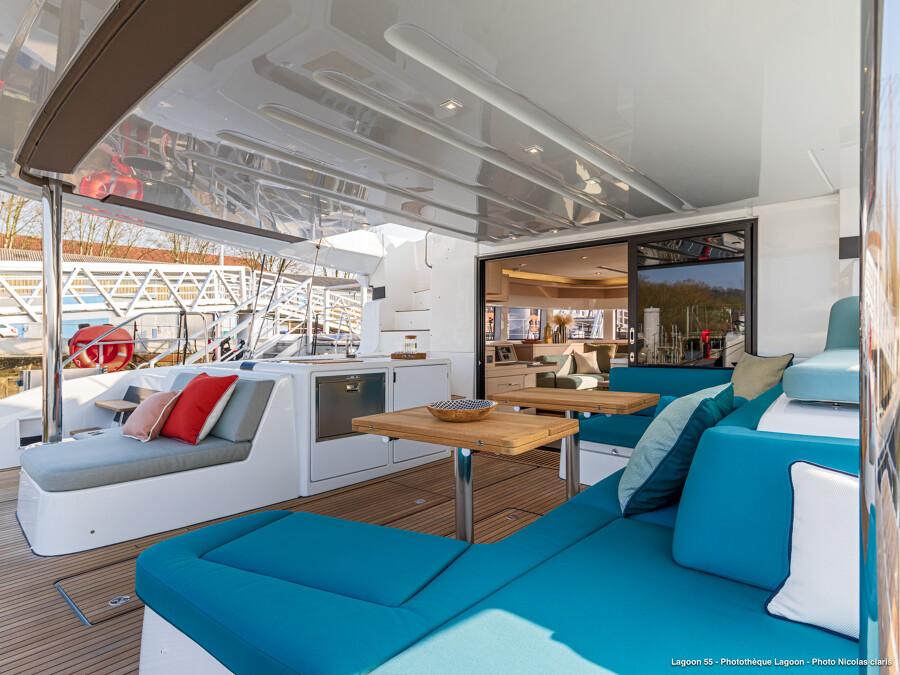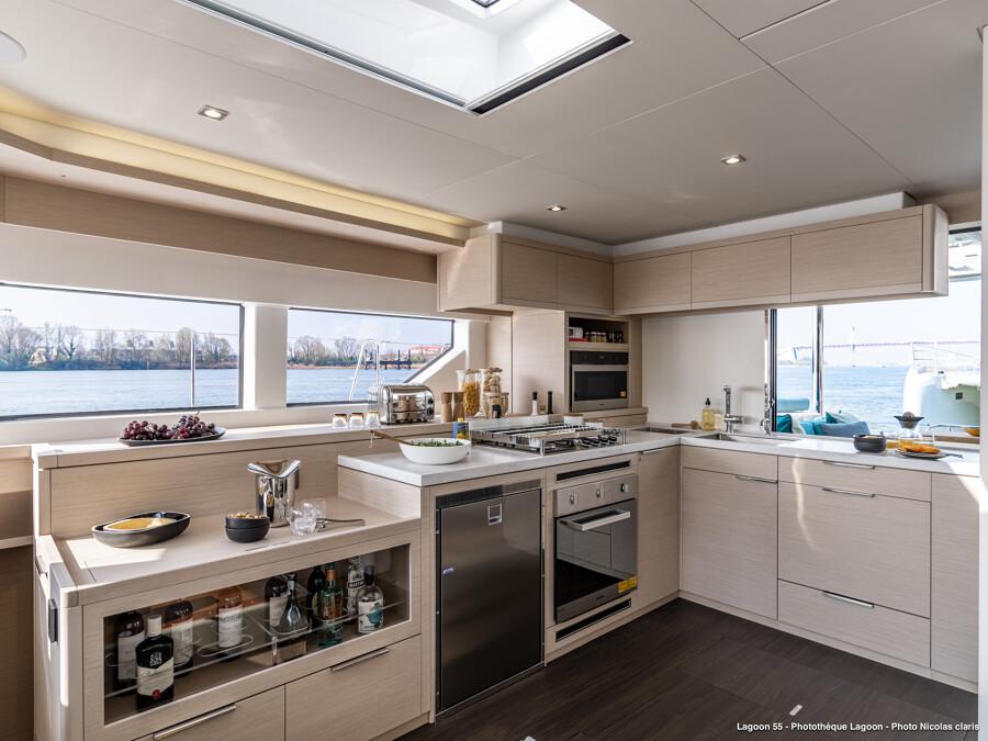 Con depósitos de combustible y agua de gran capacidad, el Lagoon 55 está preparado para largos periodos en el mar, con la opción de paneles solares para mayor independencia.