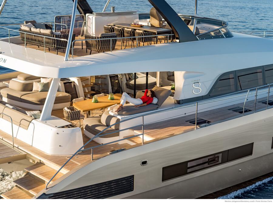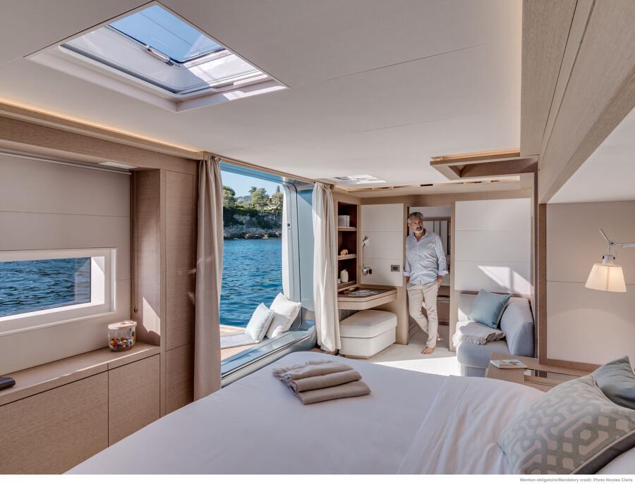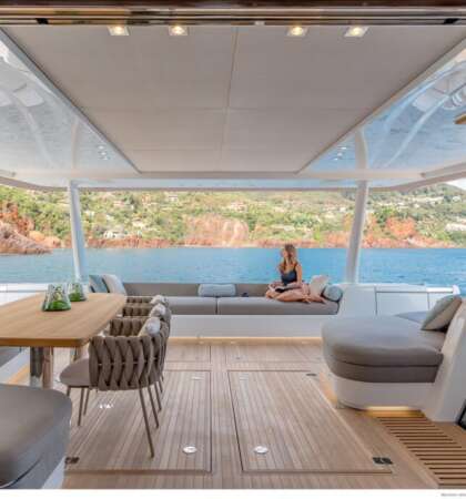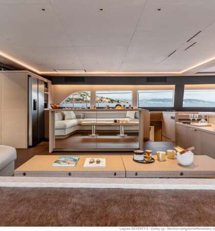 Desde sus camarotes con baño privado hasta sus zonas de descanso, el Lagoon Seventy 8 ofrece un nivel de personalización y confort propio de un yate de alta gama.