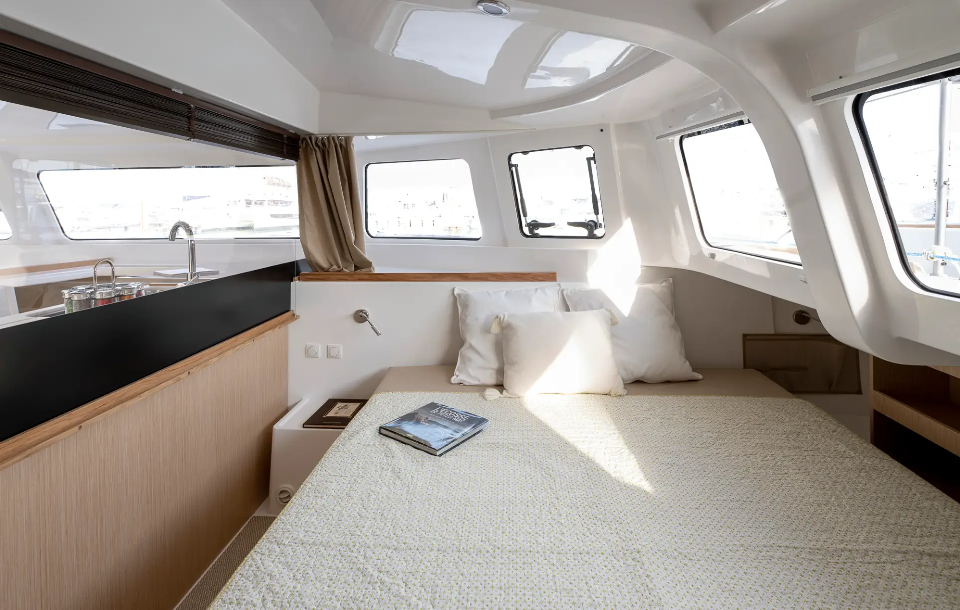 - El sistema de energía eficiente con paneles solares, luces LED y desalinizador mejora la autonomía en largas travesías.