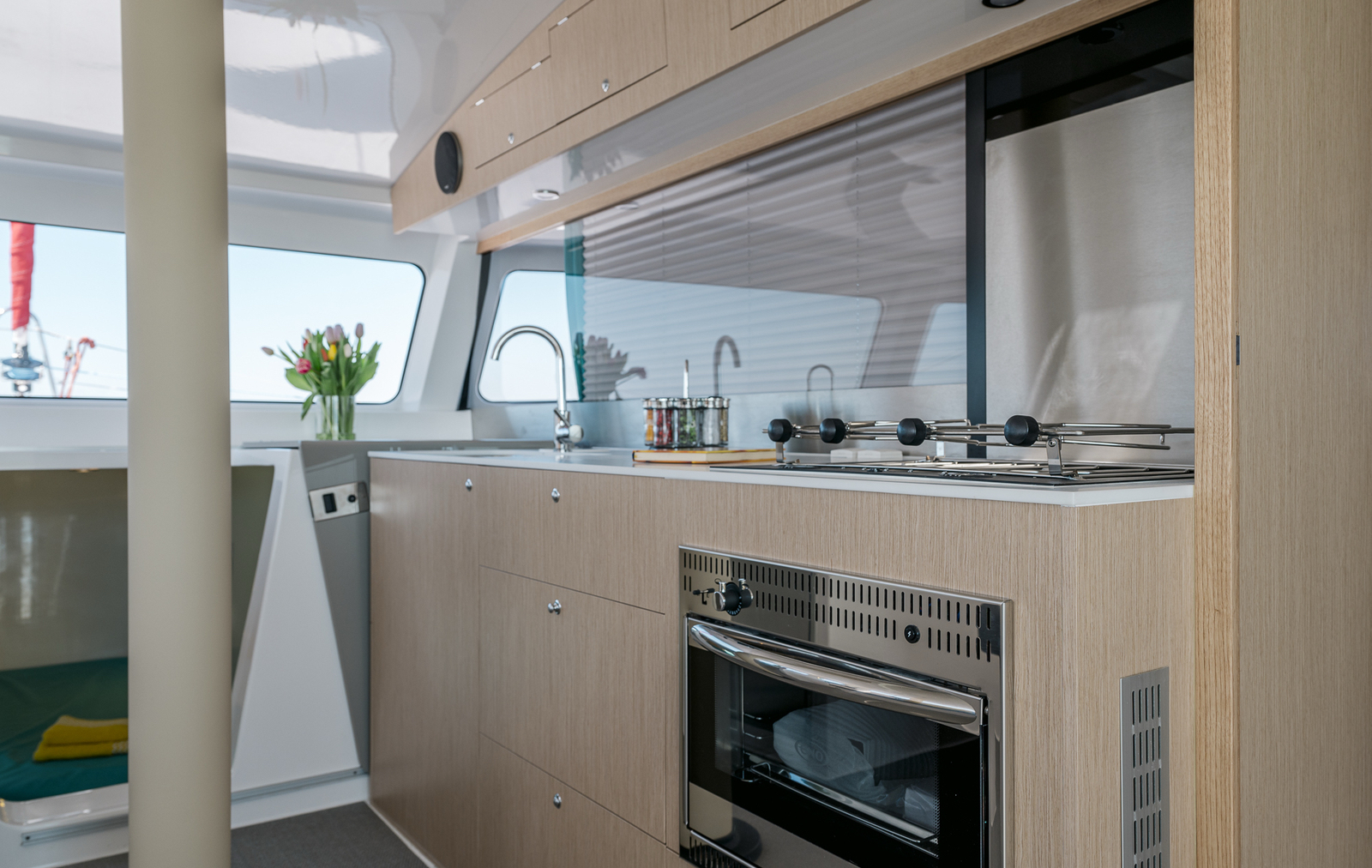 - Cocina abierta totalmente equipada y optimizada para peso reducido