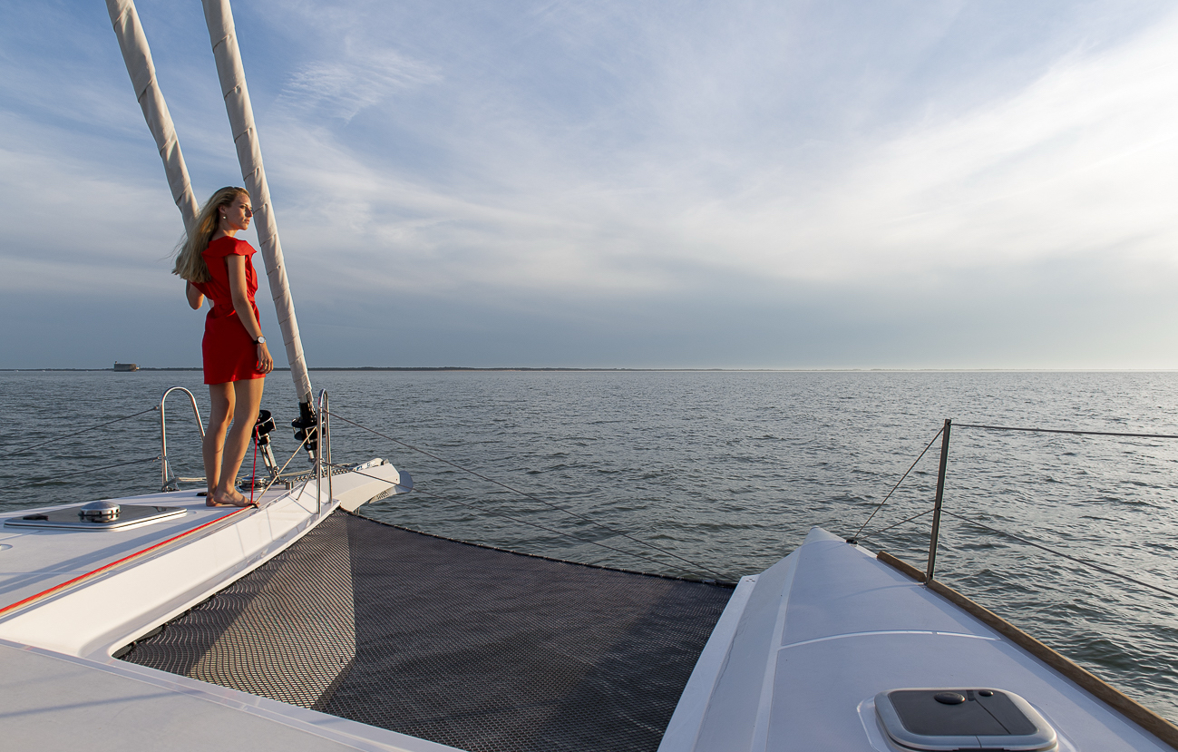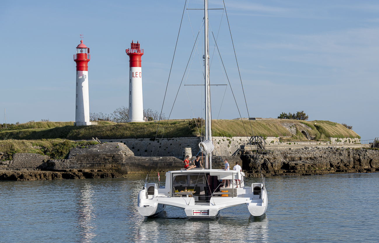 - Equipado con propulsión eléctrica de 25 kW y un hidrogenerador, este trimarán garantiza una navegación silenciosa y sostenible, reduciendo el consumo de combustible.