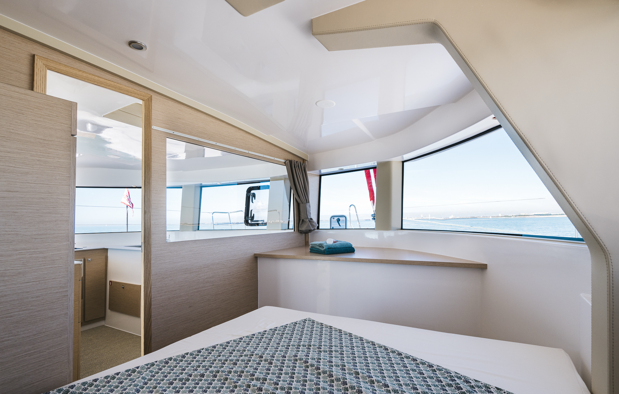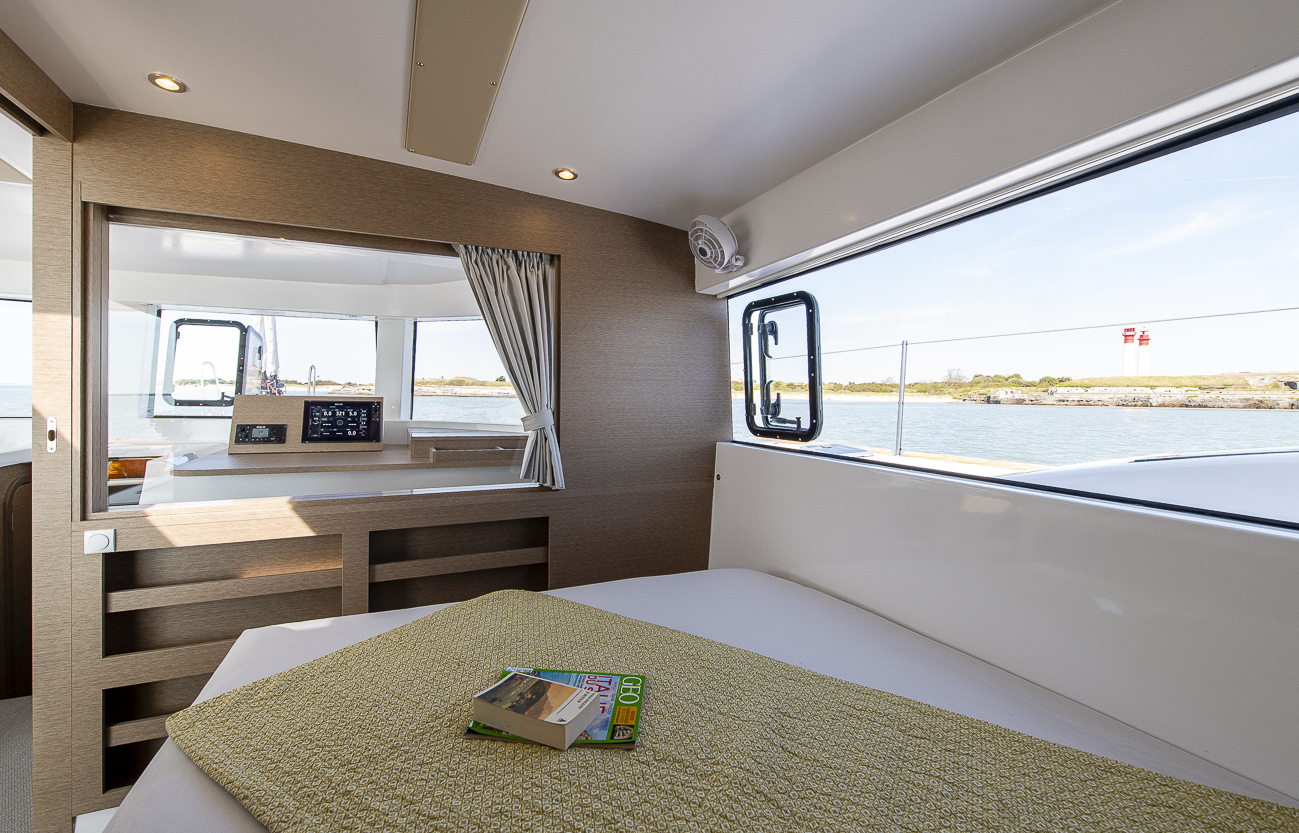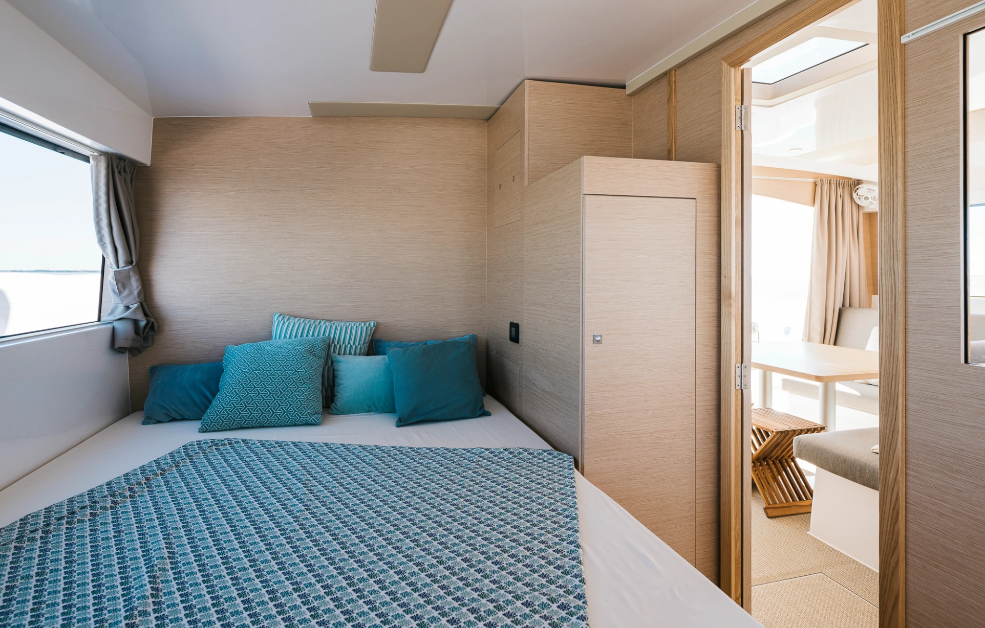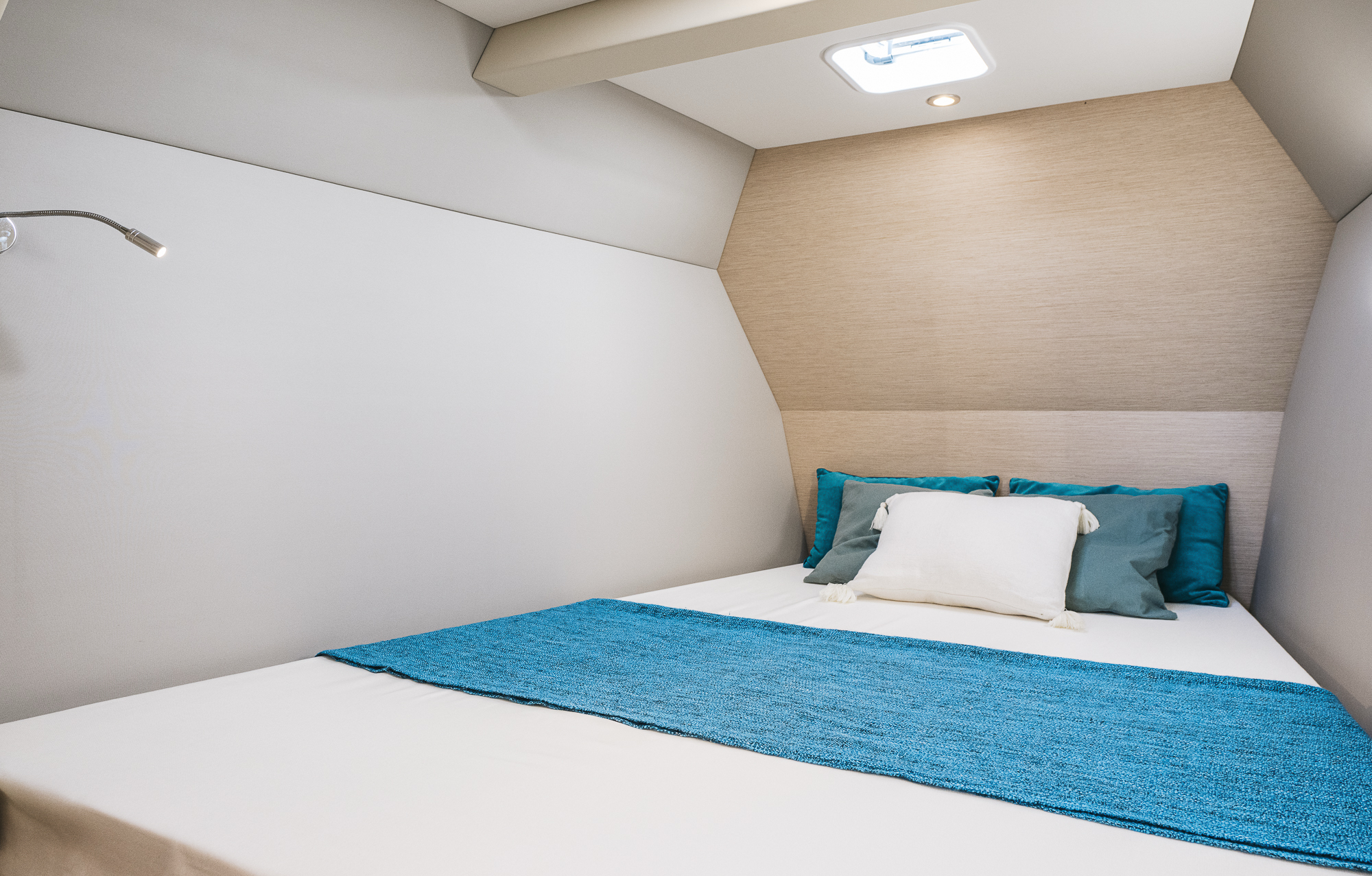 - Su amplia cabina central de propietario ofrece un espacio de vida cómodo y funcional, con acceso directo a una sala de baño privada con ducha y WC.