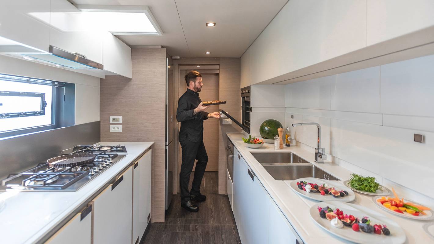 - Versión Lounge Maestro: 1 suite armador + 1 baño privado / 2 camarotes dobles + 1 camarote litera + 3 baños + 2 camarotes Skipper