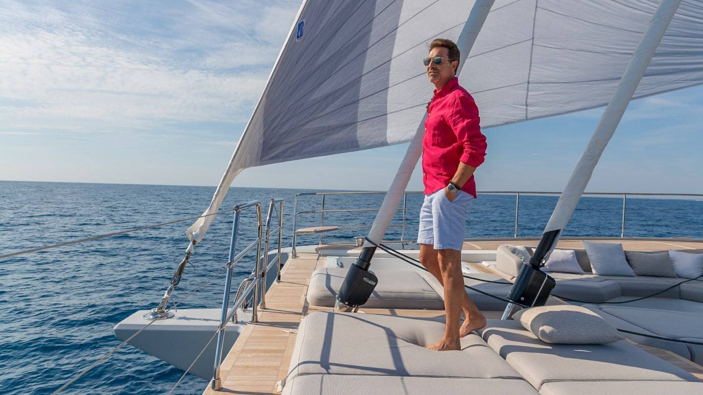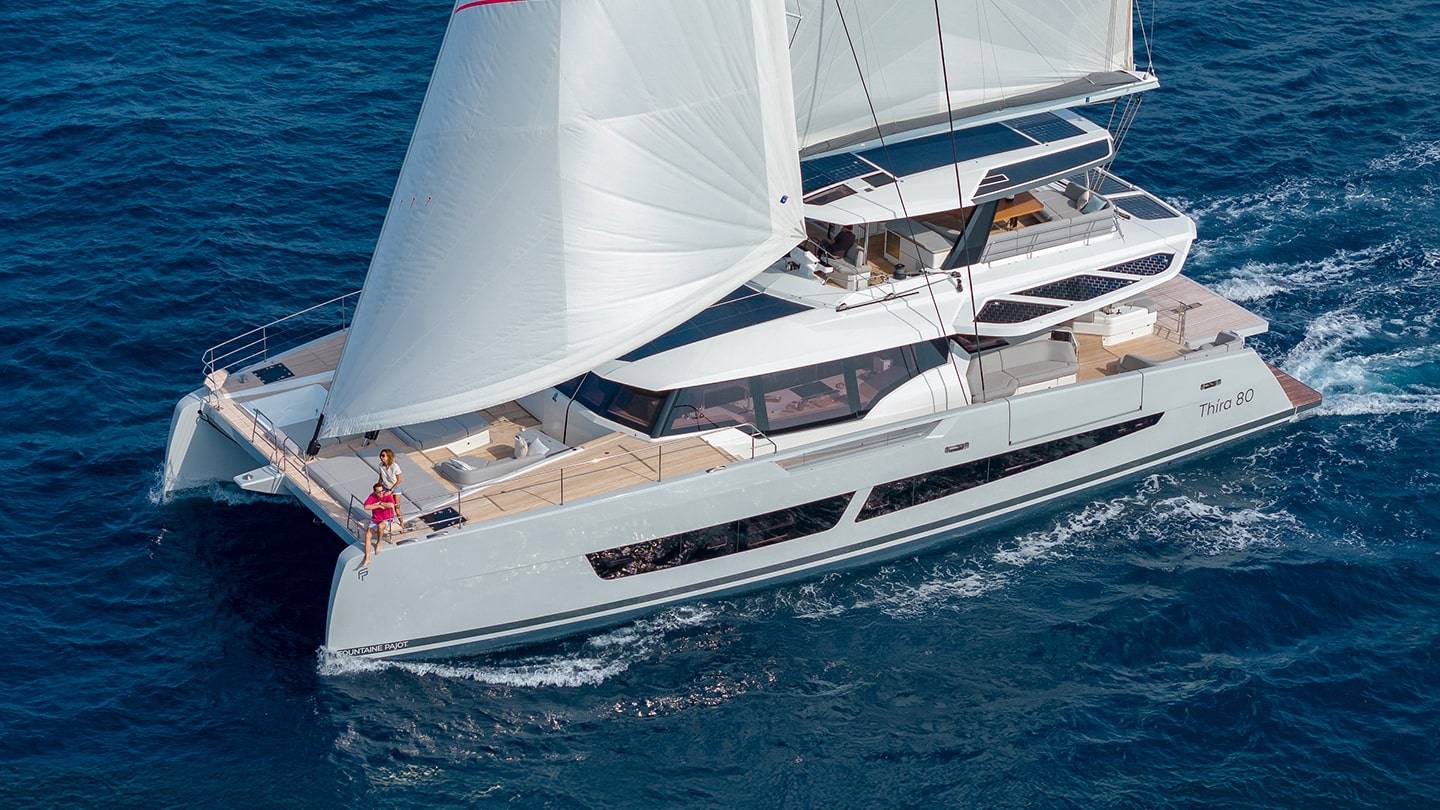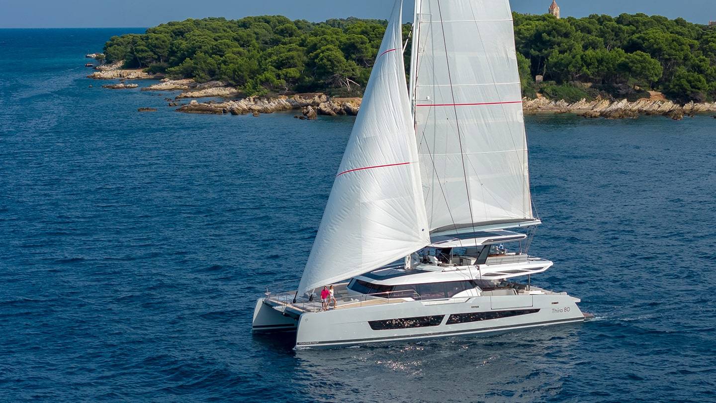 El Thíra 80 es un catamarán de lujo que combina intimidad y elegancia, ideal para viajeros exigentes. Con un diseño innovador, ofrece amplios espacios interiores y exteriores, garantizando un confort excepcional y un rendimiento sobresaliente, todo mientras se navega a vela en un ambiente de lujo sin precedentes.