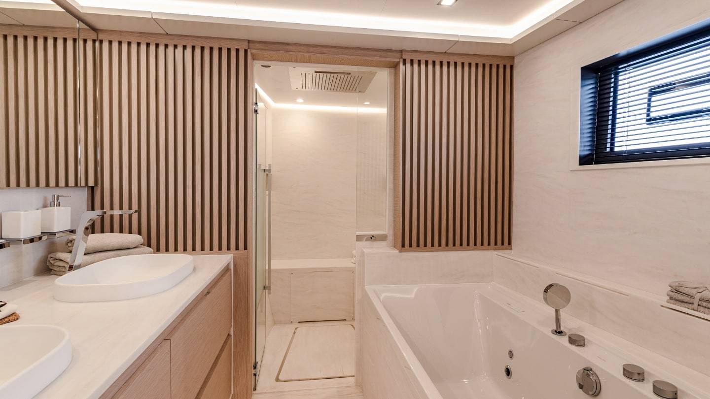 Cada camarote ofrece acceso privado, permitiendo una experiencia íntima. El camarote del armador es excepcionalmente espacioso, con opciones para incluir un spa o baño de lujo. El diseño exterior y los detalles interiores aseguran que la comodidad sea máxima durante toda la travesía.